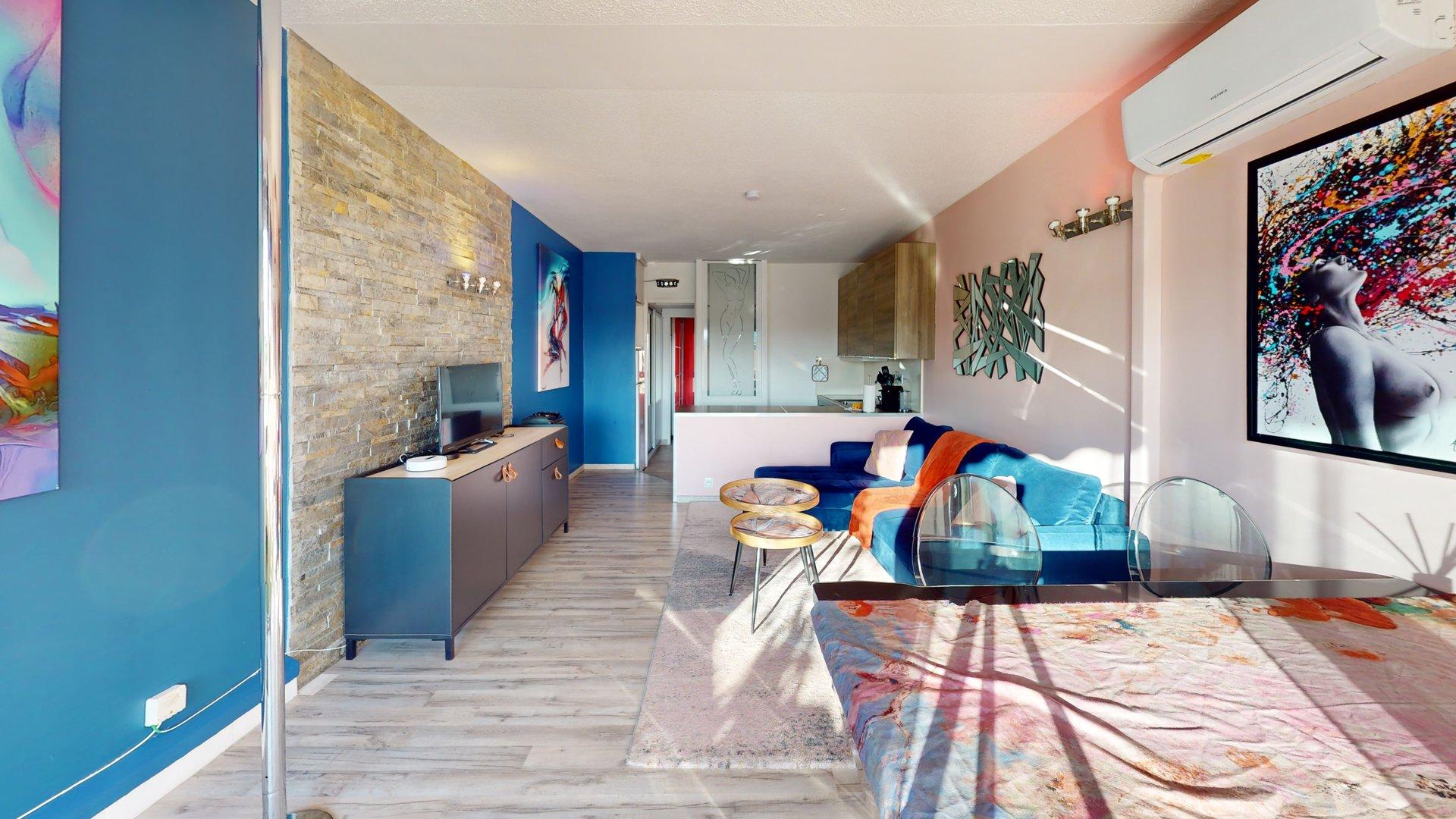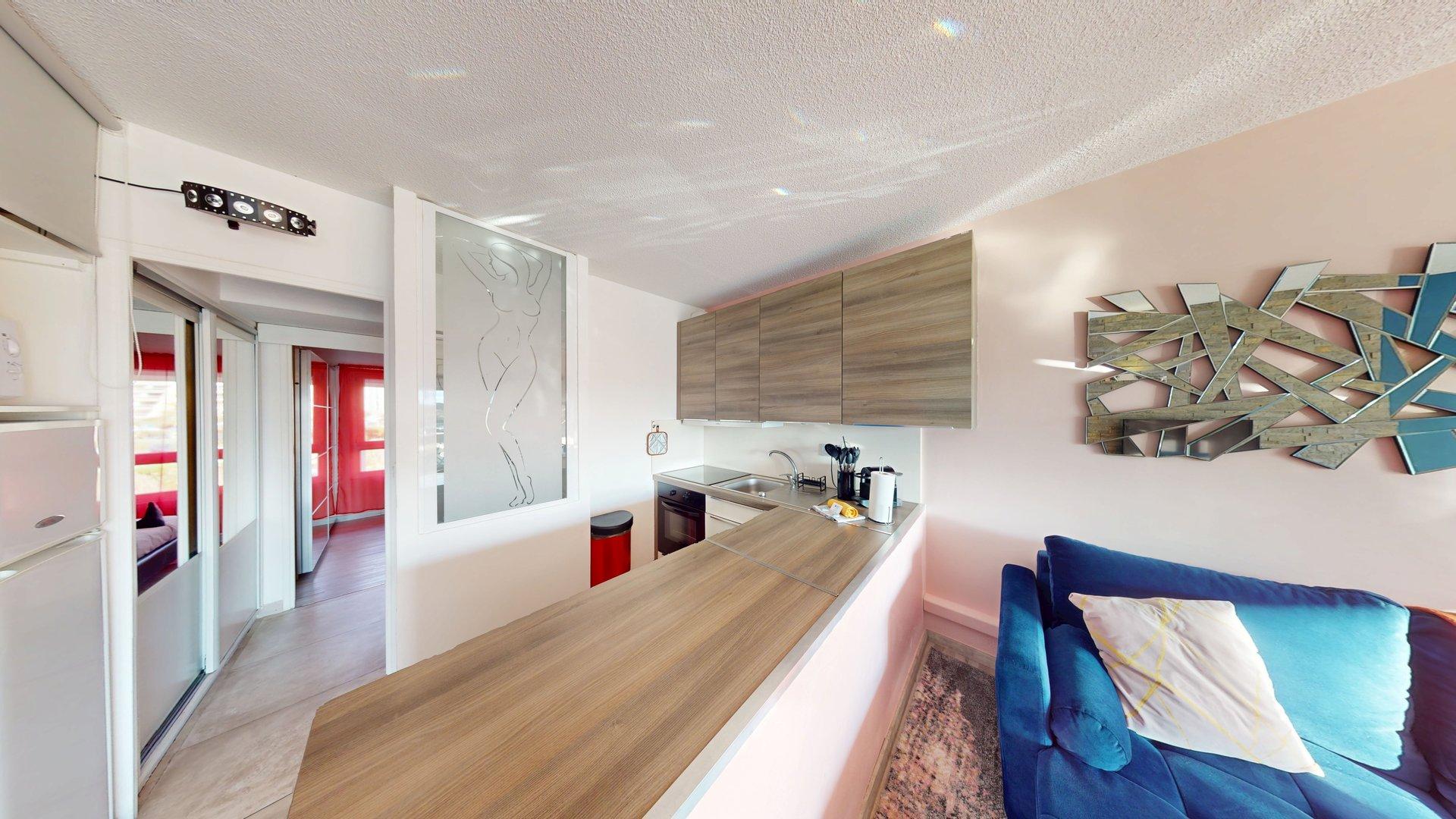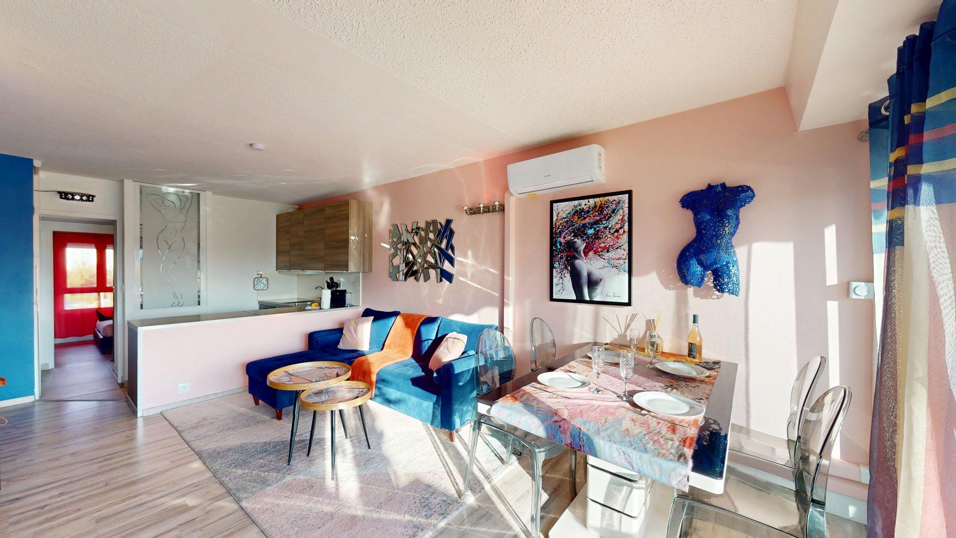 - Grand espace de vie Salon / Cuisine, 1 Table et 4 chaises